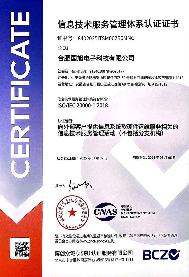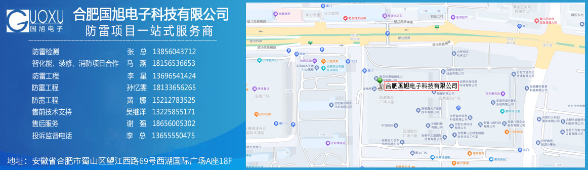 合肥國旭電子科技有限公司創(chuàng)立于2006年,總注冊資本2008萬。公司總部地址位于安徽IT主流商圈核心,合肥市蜀山區(qū)望江西路與肥西路交口西湖國際廣場。 公司是專業(yè)從事智能防雷檢測系統(tǒng)、智能化工程設(shè)計(jì)與施工工程、防雷設(shè)計(jì)施工工程、數(shù)據(jù)中心機(jī)房、消防工程、網(wǎng)絡(luò)監(jiān)控安全技術(shù)防范工程、及智能變電站安全預(yù)警系統(tǒng)。